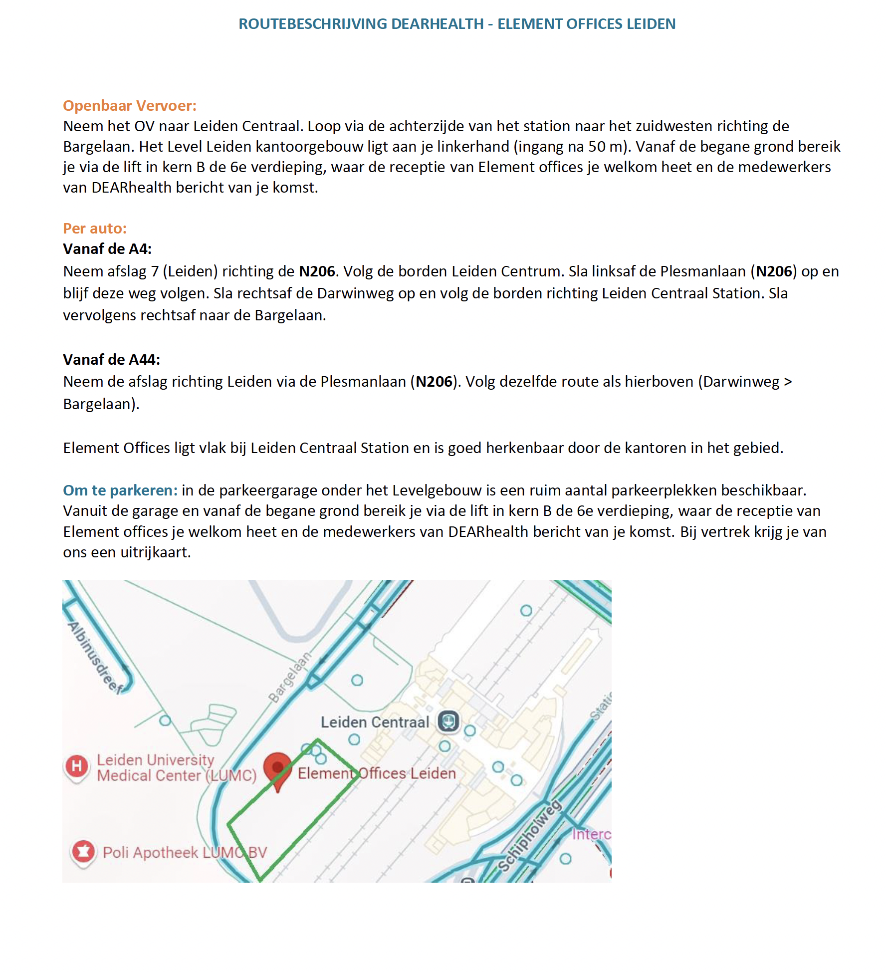 DEARhealth is processing personal data on behalf of your healthcare provider. This means that your provider is responsible for which data is being processed and for which exact cause. Of course your permission is always needed for processing data about your health.